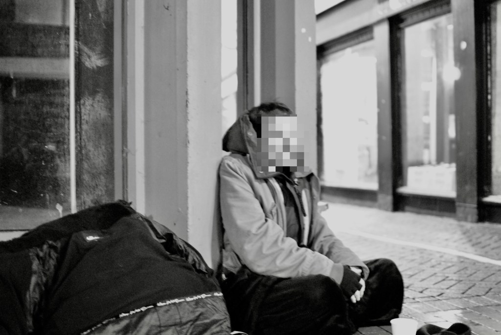 On apologising for nearly walking into him, I got chatting with Tom [not his real name] about how he’d managed to find a dry spot to sit for the evening. Reassuringly he told me he wasn’t feeling as cold this evening and that he had his sleeping bag there if it got bad. It was no place to sleep for the night though, especially with all of the drunken revellers of a busy town passing by. Tom told me that he had somewhere to sleep for the night. He told me had a tent not far from where we were chatting and that there were quite a few people living there together.